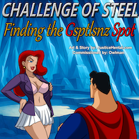 You'd think the long layoff between bouts would leave plenty of time for the little guy to spend with his gal Gsptlsnz, but beating Superman at long last has become more than Mxyzptlk's mission; it's his obsession! While Mr. Mxyzptlk plots and schemes, his other- sexier- half is left alone to twiddle her thumbs and diddle herself. What's a gal to do? Who's a gal to do? It's time for Gsptlsnz to test the Man of Steel's powers and limits!